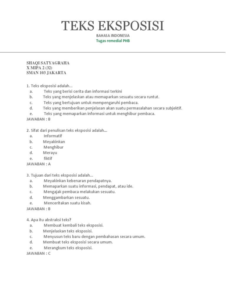 Contoh Soal Pilihan Ganda Sifat dari penulisan teks eksposisi adalah. Jawabannya adalah B Meyakinkan Baca juga. Teks Eksplanasi adalah teks yang menggambarkan proses dari sesuatu yang terjadi atau sedang dibentuk.