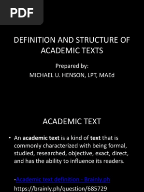 Academic text include brainly. You should now have a general idea of what the text is about and if it is going to be useful for you. Start with a relevant research question or thesis statement and use it to develop a focused argument. Write down two to three questions about the text that you can bring up during class discussion.